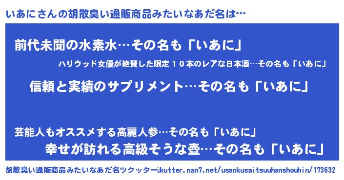 | ヘコむあだ名 | 『いあを』『いあに(遠い目)』『豆乳』 |