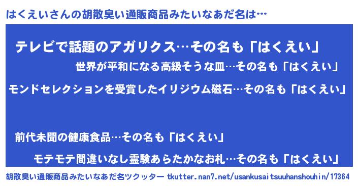 | 欧米人風あだ名 | 『ダニエルはくえい』『マイケルはくえい』 |
