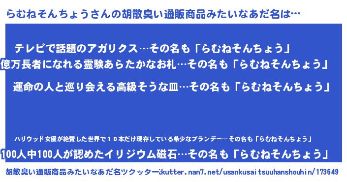| 肩書あだ名 | 『らむねそんちょう国家主席』 |