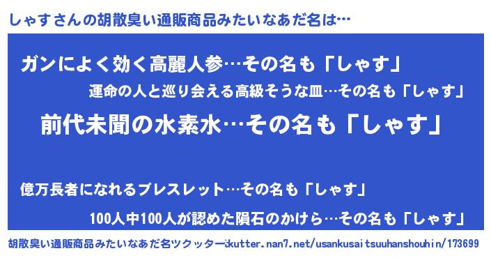 | ヘコむあだ名 | 『しゃす(震え声)』『豆乳』 |