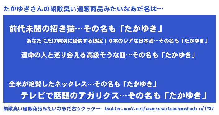 | 欧米人風あだ名 | 『たかゆきクリステル』 |