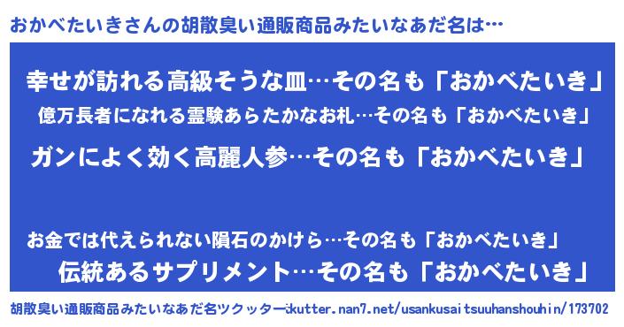 | 欧米人風あだ名 | 『アンジェラ・おかべたいき』 |