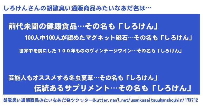 | ヘコむあだ名 | 『しろけん(笑)』『しろぷりん』 |
