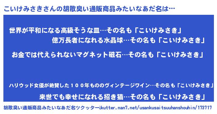 | ヘコむあだ名 | 『なまこ酢』『こいけみさき(苦笑)』 |