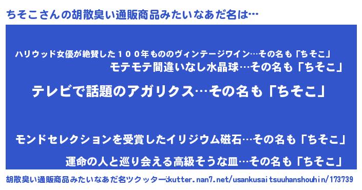| 意味不明あだ名 | 『なめこ科ちそこ属』『自称ちそこ』 |