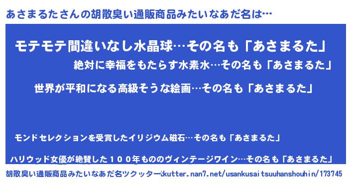 | 肩書あだ名 | 『あさまるた総理大臣』『あさまるた店長』 |
