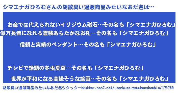 | 意味不明あだ名 | 『とにかく怪しいシマエナガひろむ』 |