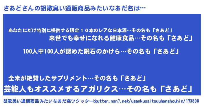 | ヘコむあだ名 | 『さあど(震え声)』『さあっぺ』 |