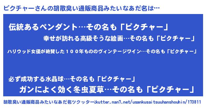 | ヘコむあだ名 | 『ピクお』『酢こんぶ』『ピクもー』 |