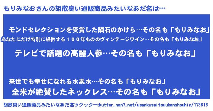 | ヘコむあだ名 | 『もりを』『もりみなお(苦笑)』 |