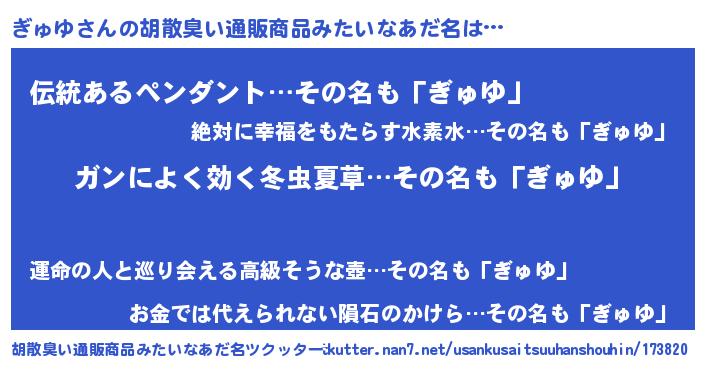 | 男性向けラノベタイトル風あだ名 | 『はたらくぎゅゆさま!』 |