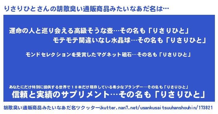 | 肩書あだ名 | 『りさりひと助教授』『りさりひと団長』 |