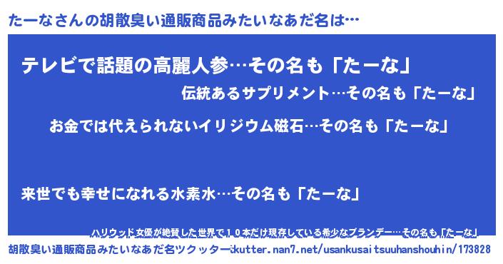 | ヒーロー風カッコイイあだ名 | 『愛の使者たーな』『サイバー戦士ターナ』 |