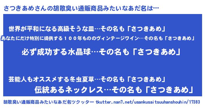 | 肩書あだ名 | 『さつきあめ店長』『さつきあめ総理大臣』 |