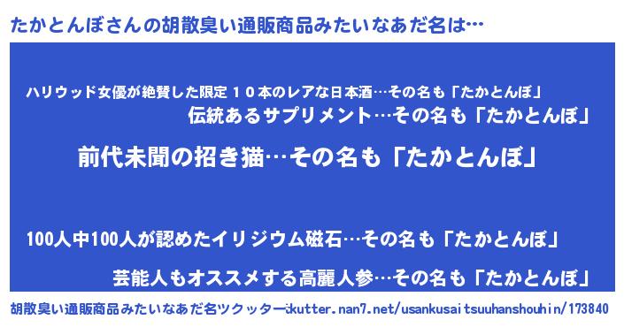 | 意味不明あだ名 | 『永久保存たかとんぼ』『自称たかとんぼ』 |