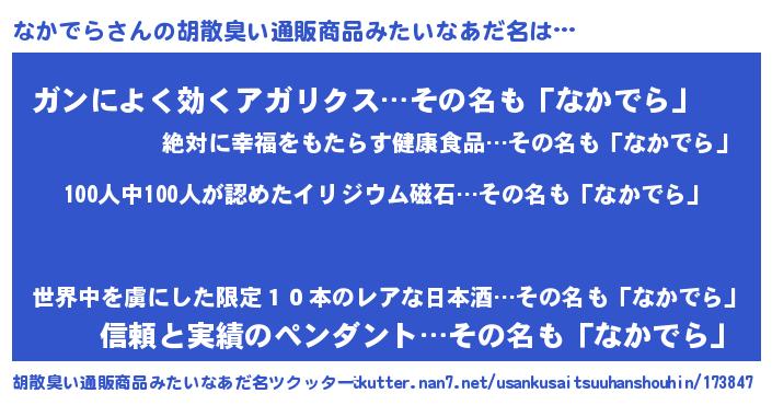 | ヘコむあだ名 | 『なかっ子』『なかでら(笑)』 |