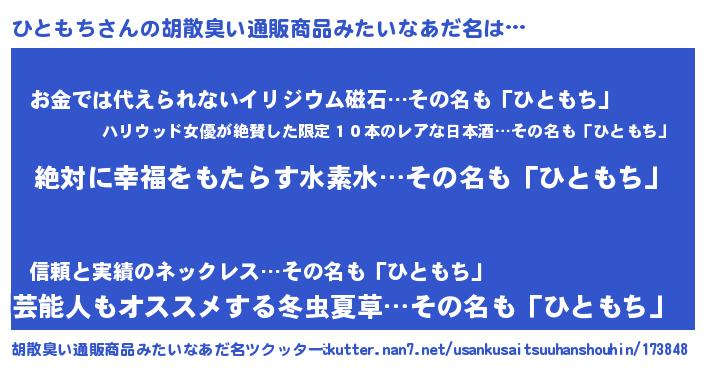 | ヘコむあだ名 | 『ひともち(震え声)』『ひと太郎』 |