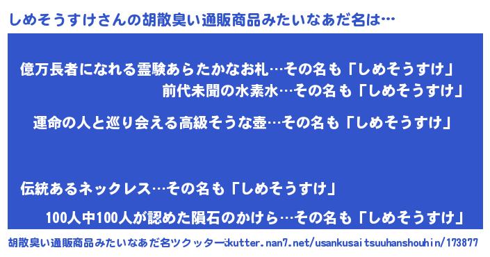 | 意味不明あだ名 | 『しめそうすけフォーエバー』 |