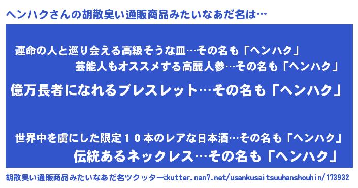 | 意味不明あだ名 | 『ペロリンヘンハク』『自称ヘンハク』 |