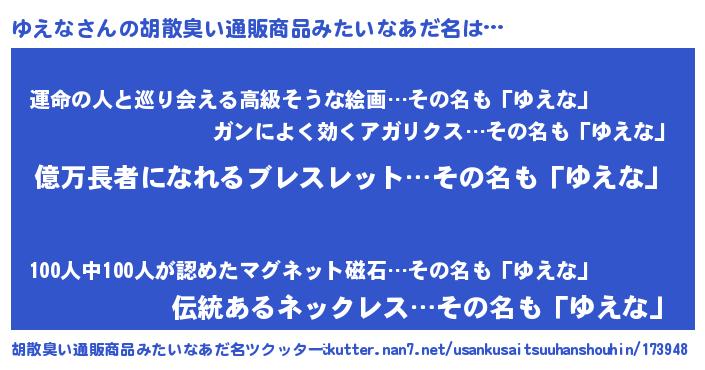 | ヘコむあだ名 | 『ゆえにー』『レバニラ』『ゆえを』 |