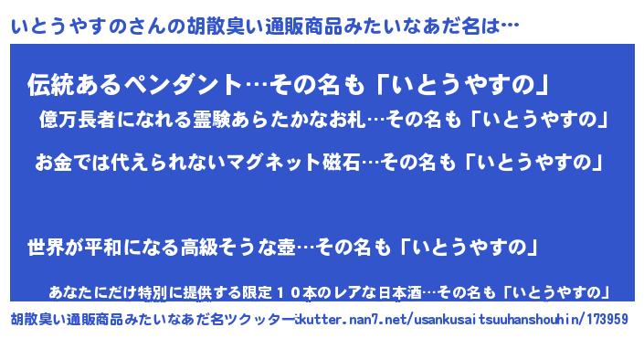 | 意味不明あだ名 | 『眠気覚ましガムいとうやすの味』 |