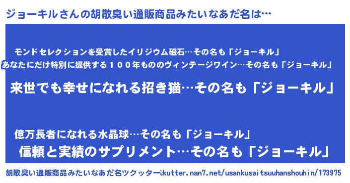 | ヒーロー風カッコイイあだ名 | 『ネオジョーキル』『幻影騎士ジョ』 |
