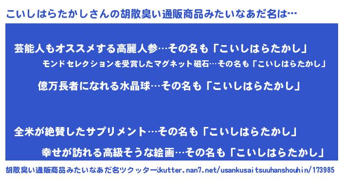 | 恥ずかしいあだ名 | 『プリティーこいしはらたかし』 |