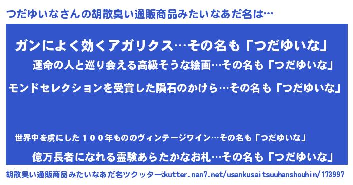 | 意味不明あだ名 | 『眠気覚ましガムつだゆいな味』 |