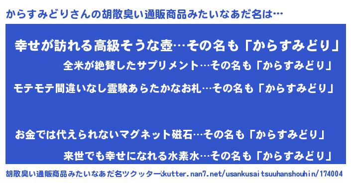 | 男性向けラノベタイトル風あだ名 | 『からすみどりの憂鬱』 |