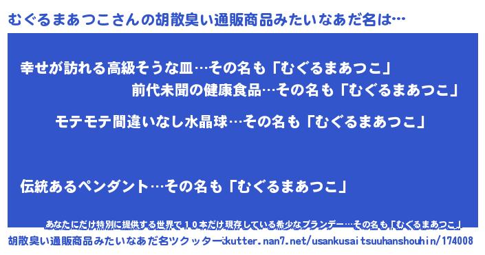 | 欧米人風あだ名 | 『マイケルむぐるまあつこ』 |