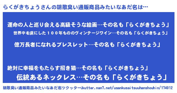 | ピコ太郎風あだ名 | 『ラコ次郎』『ピラ十郎』『ラク三郎』 |