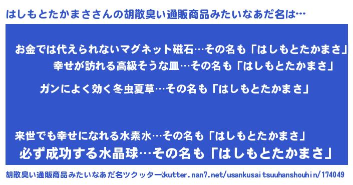 | 意味不明あだ名 | 『自称はしもとたかまさ』 |
