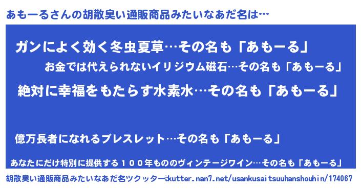| 意味不明あだ名 | 『永久保存あもーる』『自称あもーる』 |