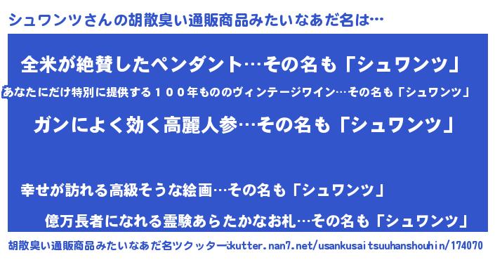 | ピコ太郎風あだ名 | 『シュ太郎』『シコ六郎』『ピシ八郎』 |