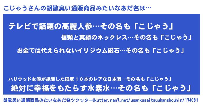 | ヒーロー風カッコイイあだ名 | 『愛の使者こじゃう』『ネオコジャウ』 |