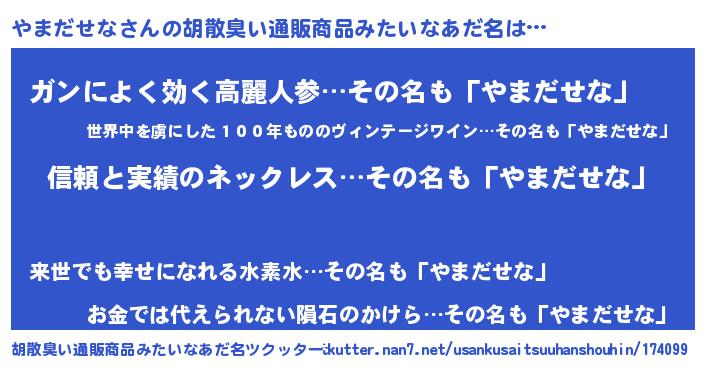 | 意味不明あだ名 | 『とにかく怪しいやまだせな』 |