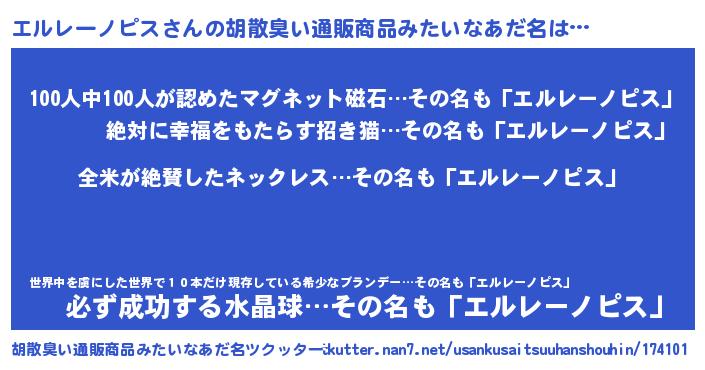| 意味不明あだ名 | 『とにかく怪しいエルレーノピス』 |