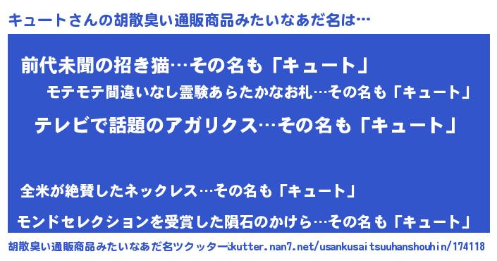 | 意味不明あだ名 | 『自称キュート』『永久保存キュート』 |