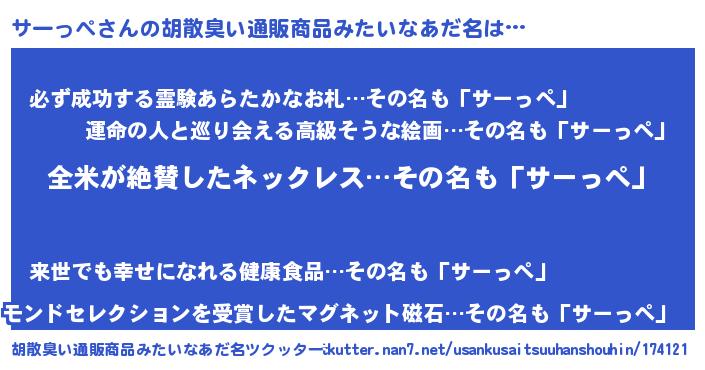 | 意味不明あだ名 | 『とにかく怪しいサーっぺ』 |