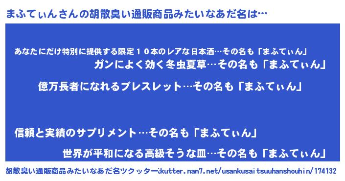 | 意味不明あだ名 | 『ペロリンまふてぃん』『自称まふてぃん』 |