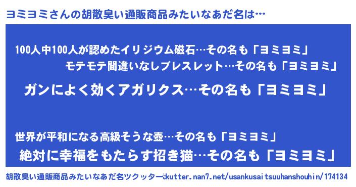 | ヘコむあだ名 | 『ヨミヨミ(爆)』『ヨミにゅー』 |