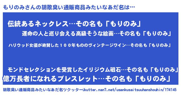| 意味不明あだ名 | 『住所不定無職もりのみ(2歳)』 |