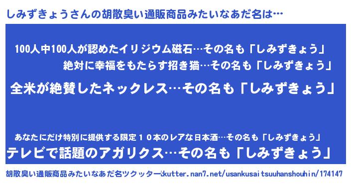 | 意味不明あだ名 | 『とにかく怪しいしみずきょう』 |