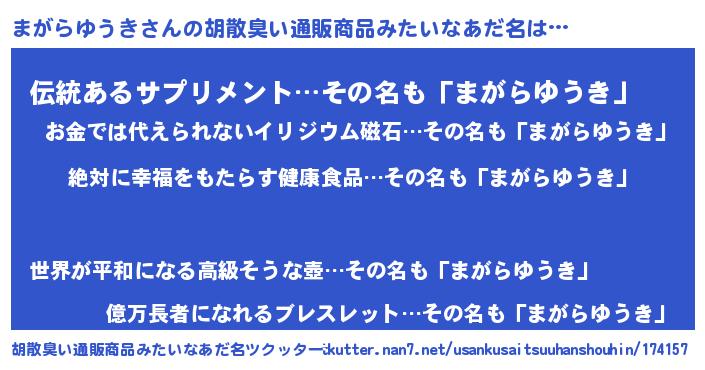 | 意味不明あだ名 | 『永久保存まがらゆうき』 |