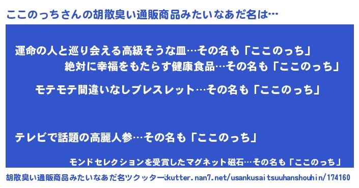 | 意味不明あだ名 | 『ペロリンここのっち』『自称ここのっち』 |