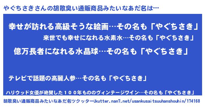 | ヘコむあだ名 | 『やぐにゅー』『牛乳』『やぐっ子』 |