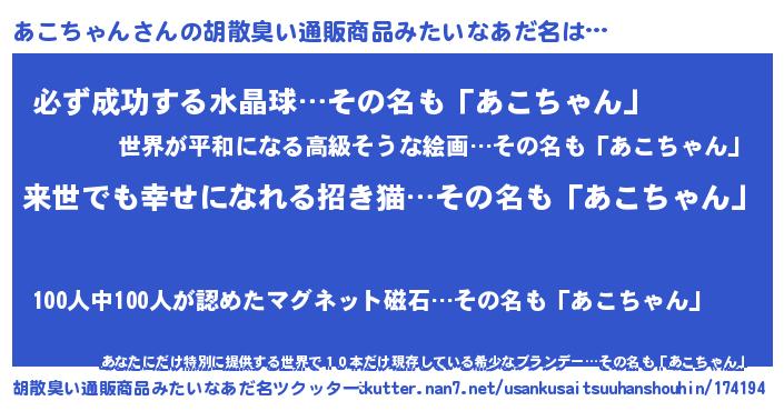 | ヘコむあだ名 | 『あこちゃん(笑)』『あこもー』 |