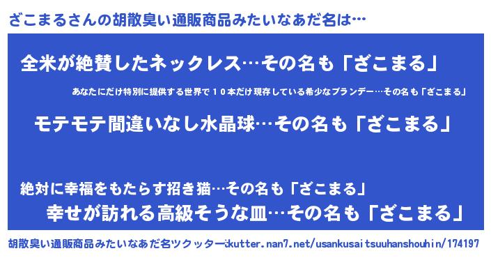 | 欧米人風あだ名 | 『マイケルざこまる』『ウサインざこまる』 |