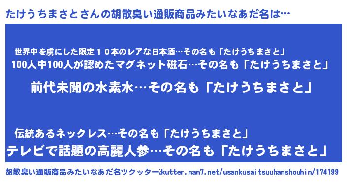 | ヘコむあだ名 | 『たけうちまさと(震え声)』『たけっぺ』 |