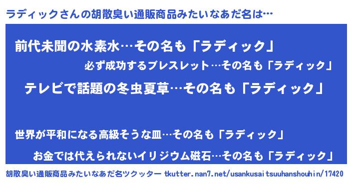 | 意味不明あだ名 | 『自称ラディック』『永久保存ラディック』 |